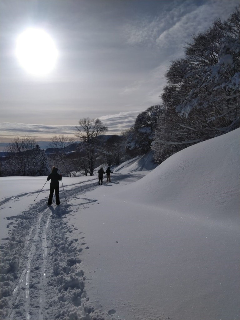 Quand on voit Martin Fourcade aller à fond en pas du patineur, on se dit que de faire du ski de fond classique en suivant une trace déjà faite, ça doit être faisable. En réalité le ski de fond est bien plus technique que cela. Quand il faut suivre la trace sur le plat tout va bien mais en descente c’est plus compliqué. Le pied n’étant pas fixé derrière on n’a pas les mêmes appuis et les mêmes sensations que sur des ski alpins. Donc attention aux chevilles! Ensuite il y a les montées. Les skis sont équipés d’écailles au niveau du dessous de la fixation on peut donc monter en ski. Ca c’est top!