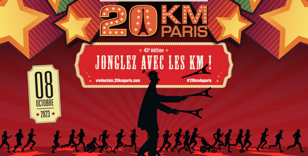 Cette année les 20km de Paris célèbrent leur 45e anniversaire et pour l’occasion, la course nous propose de “jongler avec les kms” sur le thème du cirque. Cette expérience promet d’être festive!