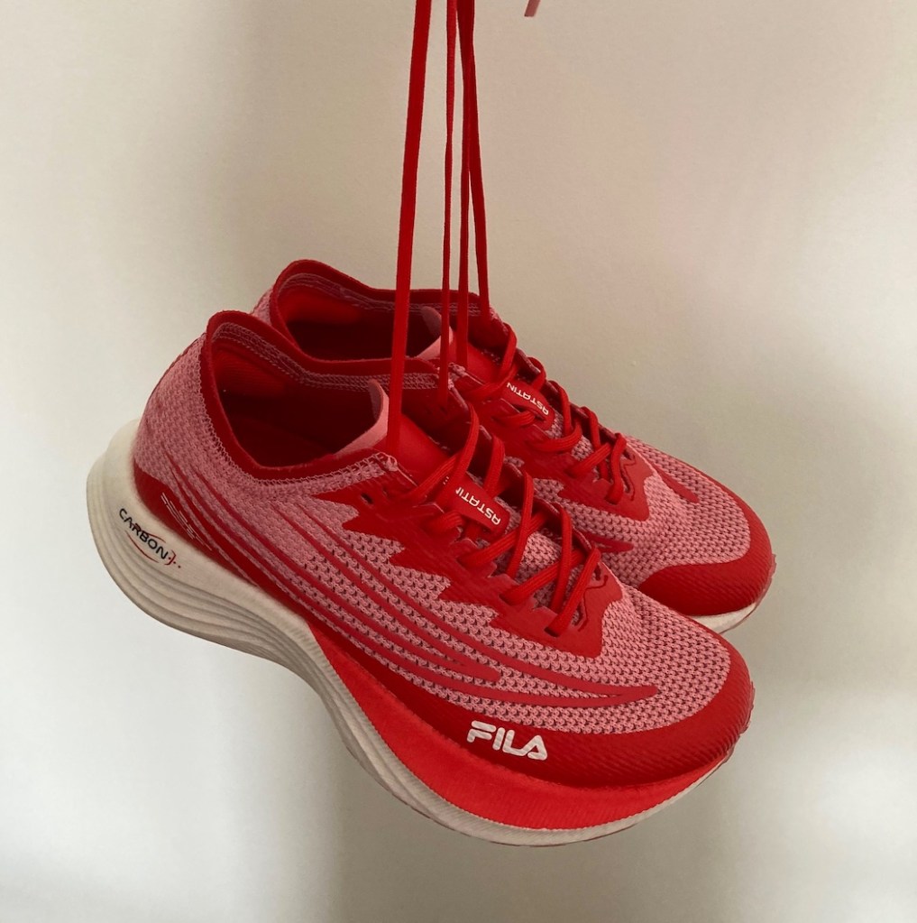 En 2023, la marque compte bien remédier à cela en sortant sa chaussure de running à plaque de carbone : la FILA ASTATINE.