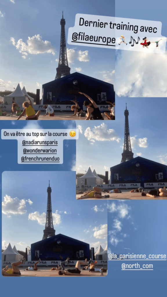 Pour se mettre en jambes, la marque, partenaire de la course depuis deux ans, proposait aux coureuses qui le souhaitaient un training vraiment très chouette sur le village de La Parisienne! J’y ai retrouvé plusieurs copines, le coach était hyper motivant et à la fin on se sentait toutes prêtes à affronter les 7km ou 10 km du lendemain 🙂
