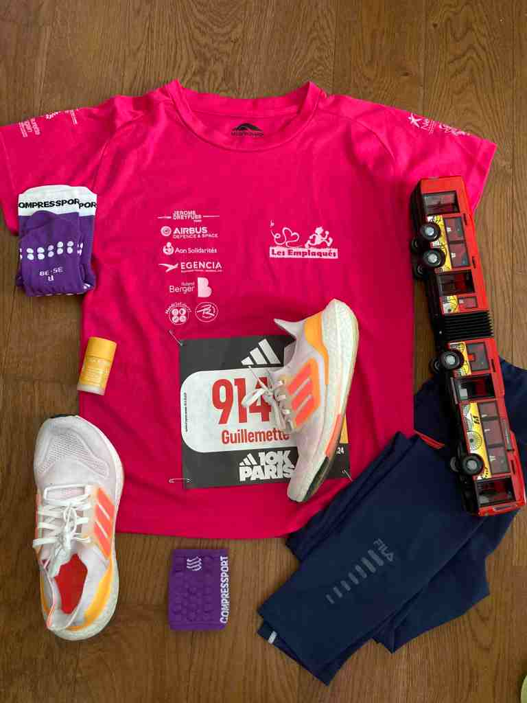 Le samedi soir je prépare mes baskets, mes chaussettes, legging et fidèle t-shirt des Emplaqués (l’association pour laquelle je cours depuis des années).