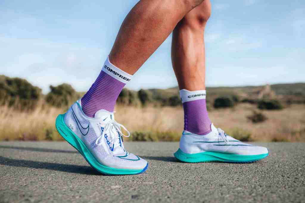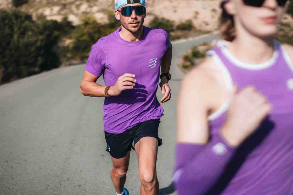 une touche de couleur : Quand je cours en t-shirt ou débardeur, j’aime quand même avoir un petit quelque chose qui me maintient le poignet. Le brassard éponge chez compressport permet d’évacuer la transpiration. J’aime le coloris violet issu de la collection purple train de la marque. Et comme on est jamais trop stylée quand on court, j’aime assortir cette touche de couleur à mes chaussettes Pro Racing socks. Je suis fan depuis des années!J’ai eu ce modèle en plusieurs couleurs et avec ces chaussettes, je n’ai plus de souci d’ampoules. ça c’est quand même génial! Si le soleil vous éblouit trop, il y a aussi une super visière violette dans la même collection. Légère, elle est faite dans une matière qui laisse respirer la peau et la transpiration s’évacuer 👍