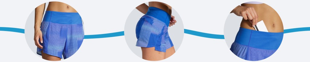 un short, not too short 😉 : Toujours chez Brooks, le short Chaser 5′ a.k.a not too short short, comme indiqué sur l’étiquette. Je n’aime pas avoir un short trop court quand je cours. Celui-ci est parfait. Il propose un bon maintient au niveau de la taille et une longueur idéale. Pas trop court ni trop long. Petit plus non négligeable, il dispose d’une petite poche dans le dos pour glisser son portable. Le top!
